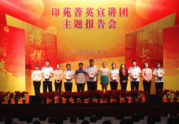 “青春榜样,引领成长;青春榜样,激情飞扬。” 9月19日下午2点,北京印刷学院印苑菁英宣讲团主题报告会在学校大礼堂举办。一个个“青春榜样”优秀学子成为活动的主角,他们卓尔不群的优异成绩引人赞叹,点点滴滴的动人事迹启人思考,坚持不懈的美言美行令人起敬,在场800多名师生反响强烈,掀起了印院学子学习榜样、携手成长的热潮。活动受到学校领导的高度重视和广大师生的踊跃参与,学校党委副书记郑文红、党委学工部部长高杨文、社科部党支部书记施节敏、宣传部副部长(主持工作)张晓新,各学院党总支副书记、学工老师,学校党委学工部、团委的相关老师以及近800名2012级新生代表参加了当天的报告会。