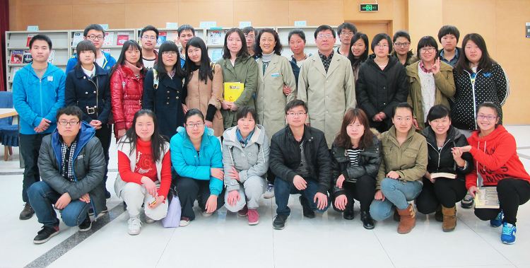 志愿者协会组织的志愿者们在义务劳动后与管理员在图书馆合影
