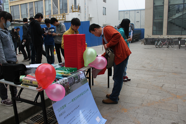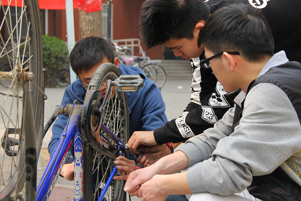 3月26日,自行车协会的同学发动协会的各位骑行爱好者,以“学雷锋 要清风 减雾霾骑车来”为主题,一方面宣扬绿色出行、环保节能、健身怡情的理念,另一方面,发挥社团成员经常骑车,对自行车具有一定的维修养护能力的特点,在校园内开展了义务修车活动。