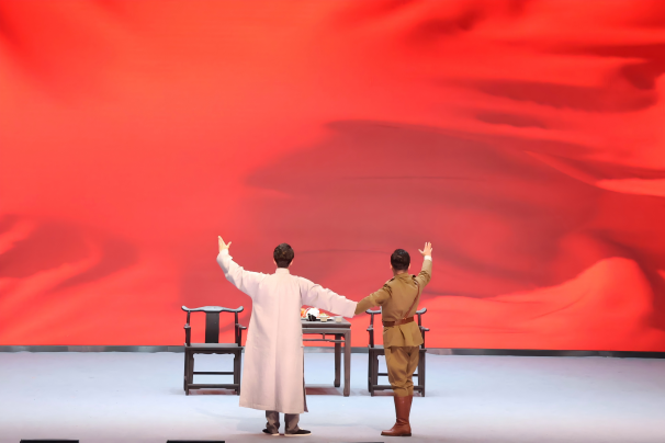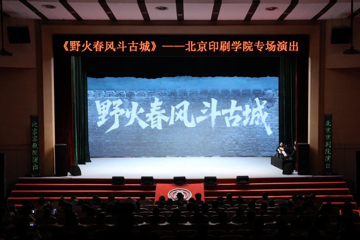 11月26日晚,北京京剧院新编现代京剧《野火春风斗古城》在北京印刷学院大礼堂精彩上演,作为学校“民族艺术进校园”活动的重要载体,这场浸润着红色基因的艺术盛宴将波澜壮阔的敌后抗日斗争故事搬上校园舞台,既是一次民族艺术的沉浸式传播,更是一堂生动鲜活的“红色大思政课”。北京京剧院院长秦艳、副院长孙鹏,大兴区人大常委会副主任、区工商联副主席、九三学社大兴区工委主委周雪峰,北京印刷学院纪委书记冯怡、副院长陈丹与近800名我校师生和北京建筑大学、北京石油化工学院学生共同观看演出。