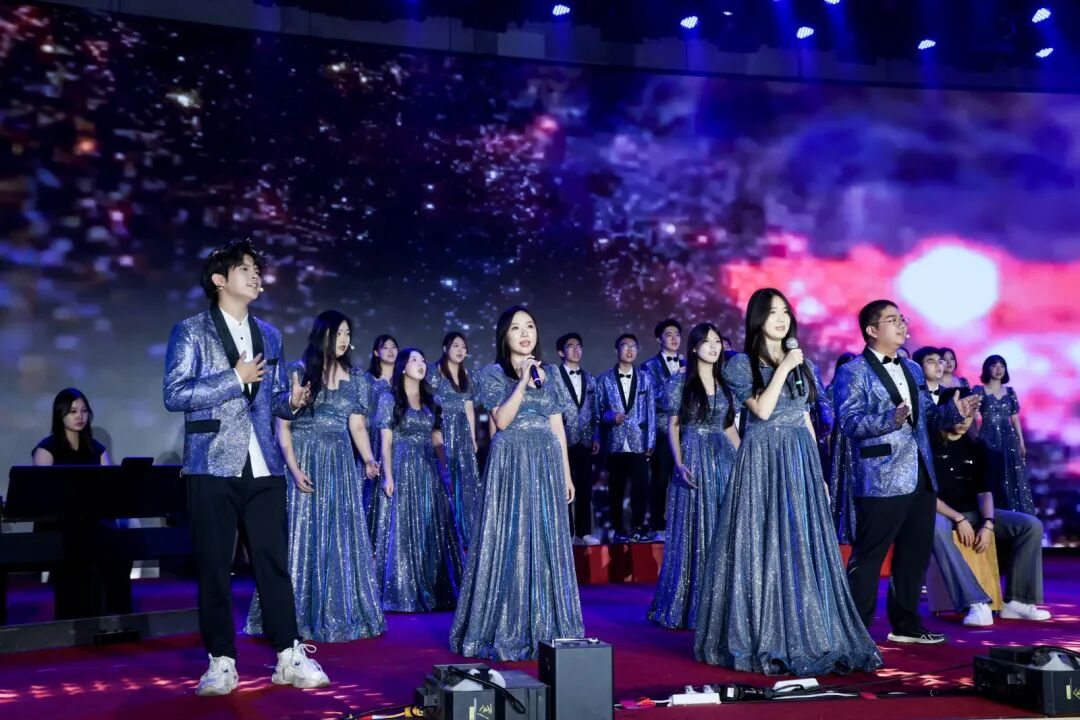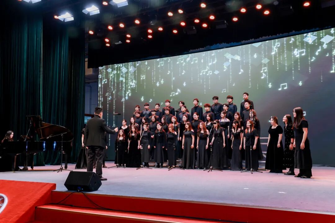 在学校毕业晚会上,合唱团的倾情演绎为毕业生送上最真挚的青春祝福,悠扬和声交织着毕业的不舍与期许,将美育浸润融入青春送别,让每一位毕业生在旋律中感受校园温情与艺术力量。