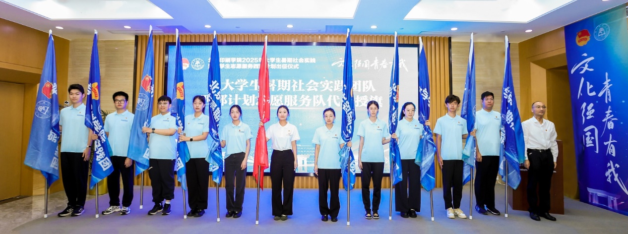 为大学生暑期社会实践团队和西部计划志愿者服务队代表授旗