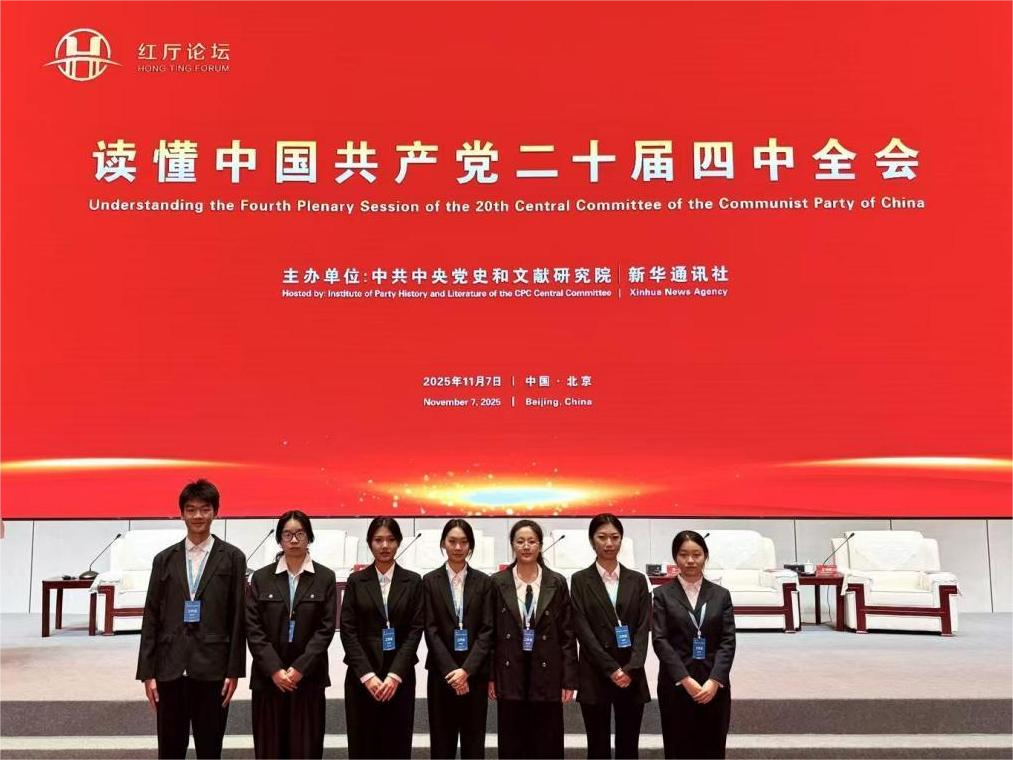 11月7日,由中共中央党史和文献研究院、新华通讯社主办的“红厅论坛:读懂中国共产党二十届四中全会”国际研讨会在国家金融信息大厦举行。学校团委、对外合作交流处联合选派7名政治素养高、综合能力强、双语交流能力突出的学生志愿者,圆满完成与会嘉宾引导服务,充分展现北印学子的责任担当与青春风采。