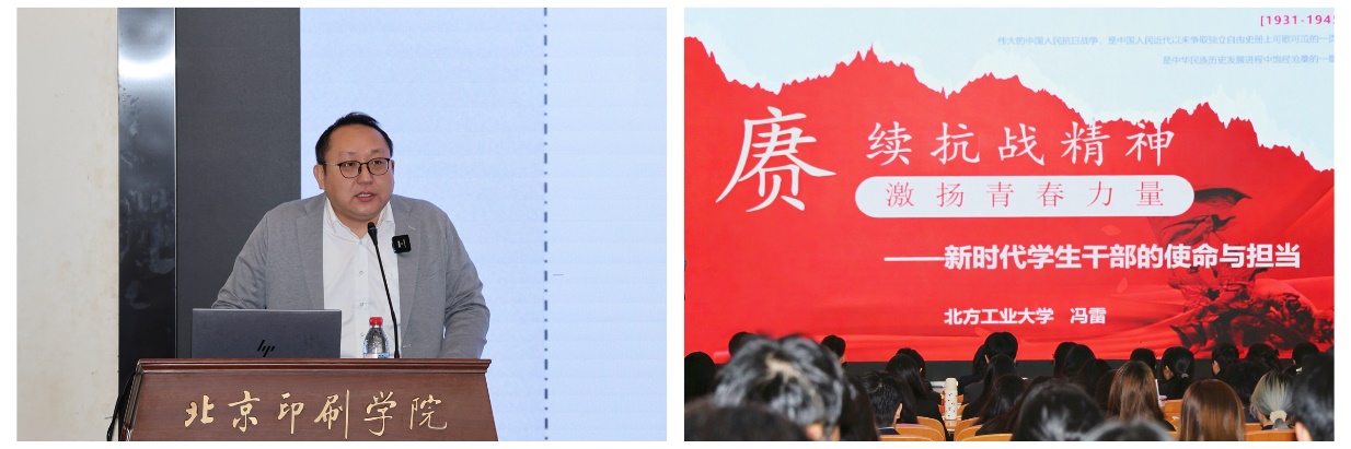 冯雷围绕“赓续抗战精神,激扬青春力量——新时代学生干部的使命与担当”进行授课。课程回顾了14年艰苦卓绝的抗日战争历程,结合台湾光复相关历史与近期重要事件,揭露了日本侵略者的罪行,强调中国共产党的中流砥柱作用。他通过郁达夫、艾青、穆旦等文人的抗战经历与作品,生动诠释了抗战精神的丰富内涵,勉励学员们从抗战精神中汲取力量,强化爱国情怀与责任担当。