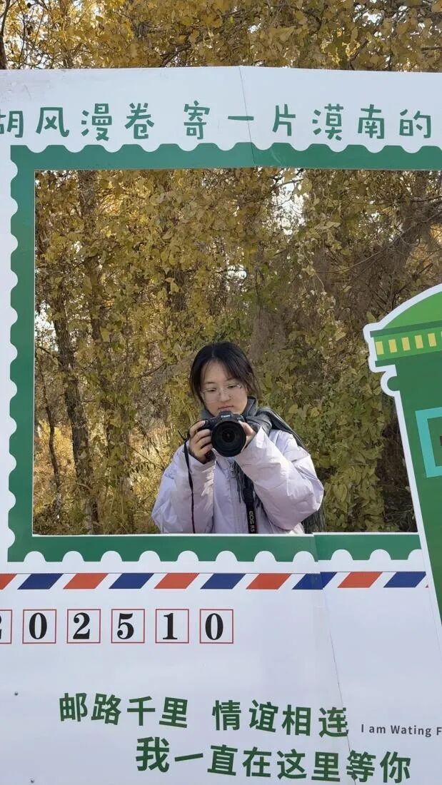 董佳怡,新闻传播学院新闻学专业2025届本科毕业生,现服务于新疆生产建设兵团第二师223团党政办公室。从校园的四书场走到兵团基层的办公岗位,她向着祖国西北边陲阔步前行,走进那片胡杨挺立的兵团大地。她将新闻专业的敏锐洞察与基层服务的踏实笃行相融,在兵团热土上书写着西部计划志愿者的青春答卷。、