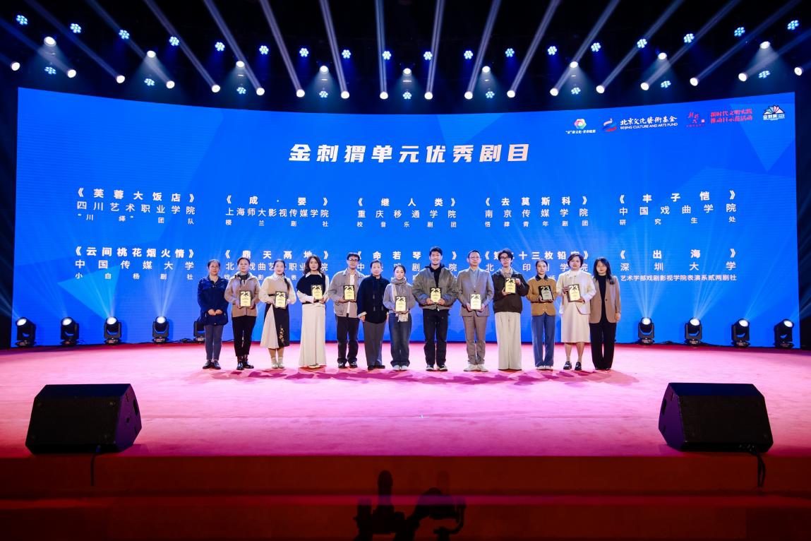 11月22日,由北京市文化和旅游局、北京市文学艺术界联合会、共青团北京市委员会、朝阳区人民政府共同主办的“‘京’彩文化 青春绽放”第23届金刺猬大学生戏剧季青春盛典在郎园Station准点剧场举行。作为当代大学生戏剧才华的展示平台,本届金刺猬大学生戏剧季吸引了来自全国28个省、自治区、直辖市、特别行政区的132所高校参与,累计收到报名剧目406部,在数量与样式上创下历届之最。经过激烈角逐,我校原创红色主题话剧《第二十三枚铅字》获得金刺猬单元优秀剧目,这也是学校首次在金刺猬大学生戏剧季中获奖。