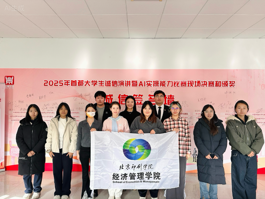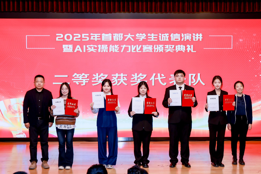近日,由北京市教育委员会、北京市经济和信息化局等单位联合主办的2025年首都大学生诚信演讲暨AI实操能力比赛决赛在北京联合大学落下帷幕。经济管理学院“知行印鉴队”凭借出色表现荣获二等奖,学校荣获优秀组织奖。