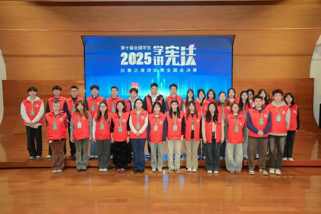 为全面贯彻党的二十大、二十届三中、四中全会及全国教育大会精神,切实落实习近平法治思想和习近平总书记关于教育的重要论述,推动青少年宪法宣传教育常态化、长效化,由教育部主办的第十届全国学生“学宪法 讲宪法”活动全国总决赛,于11月28日至12月3日在全国青少年法治教育实践示范基地成功举办,我校86名学生志愿者全程护航,用专业与热忱书写青春答卷!