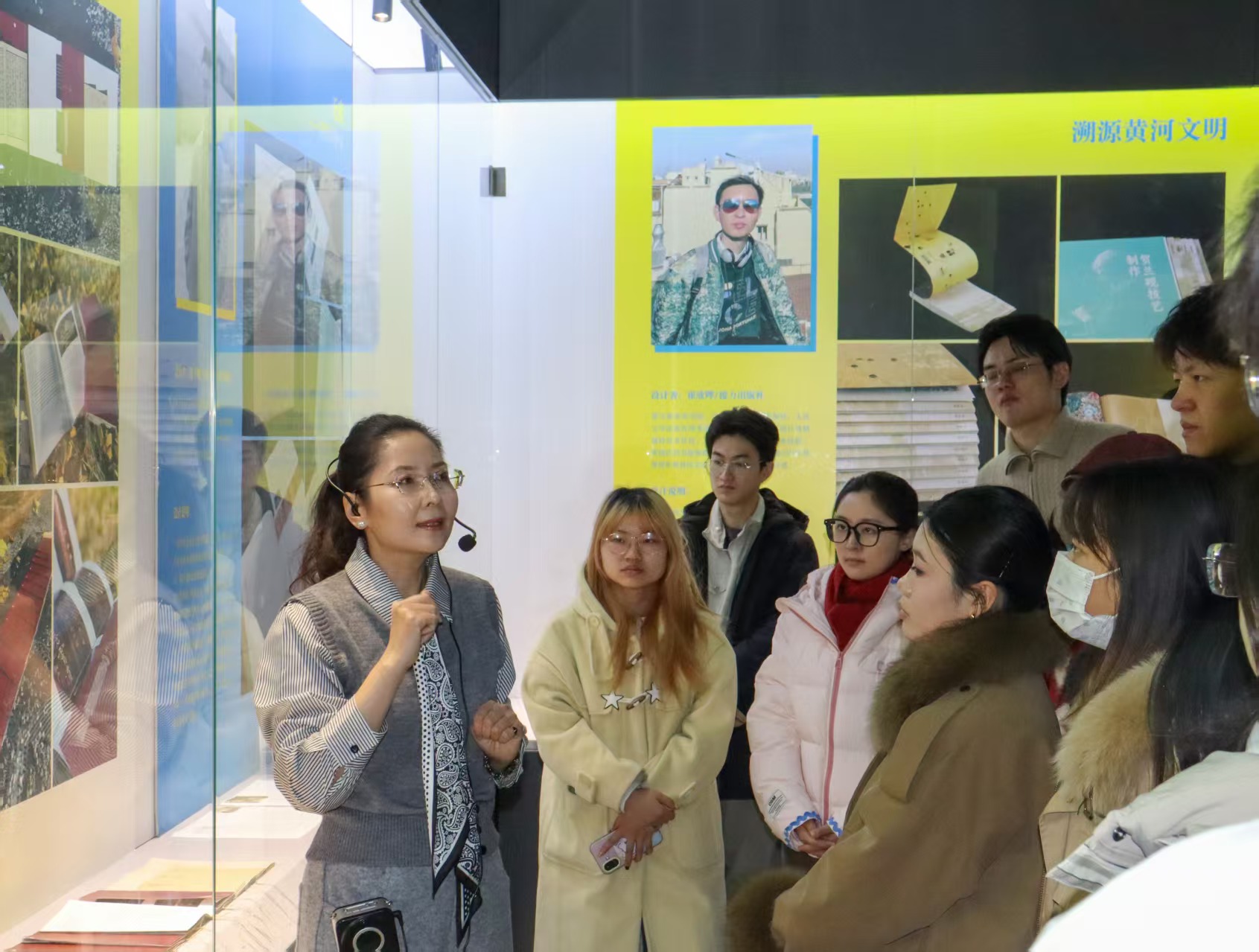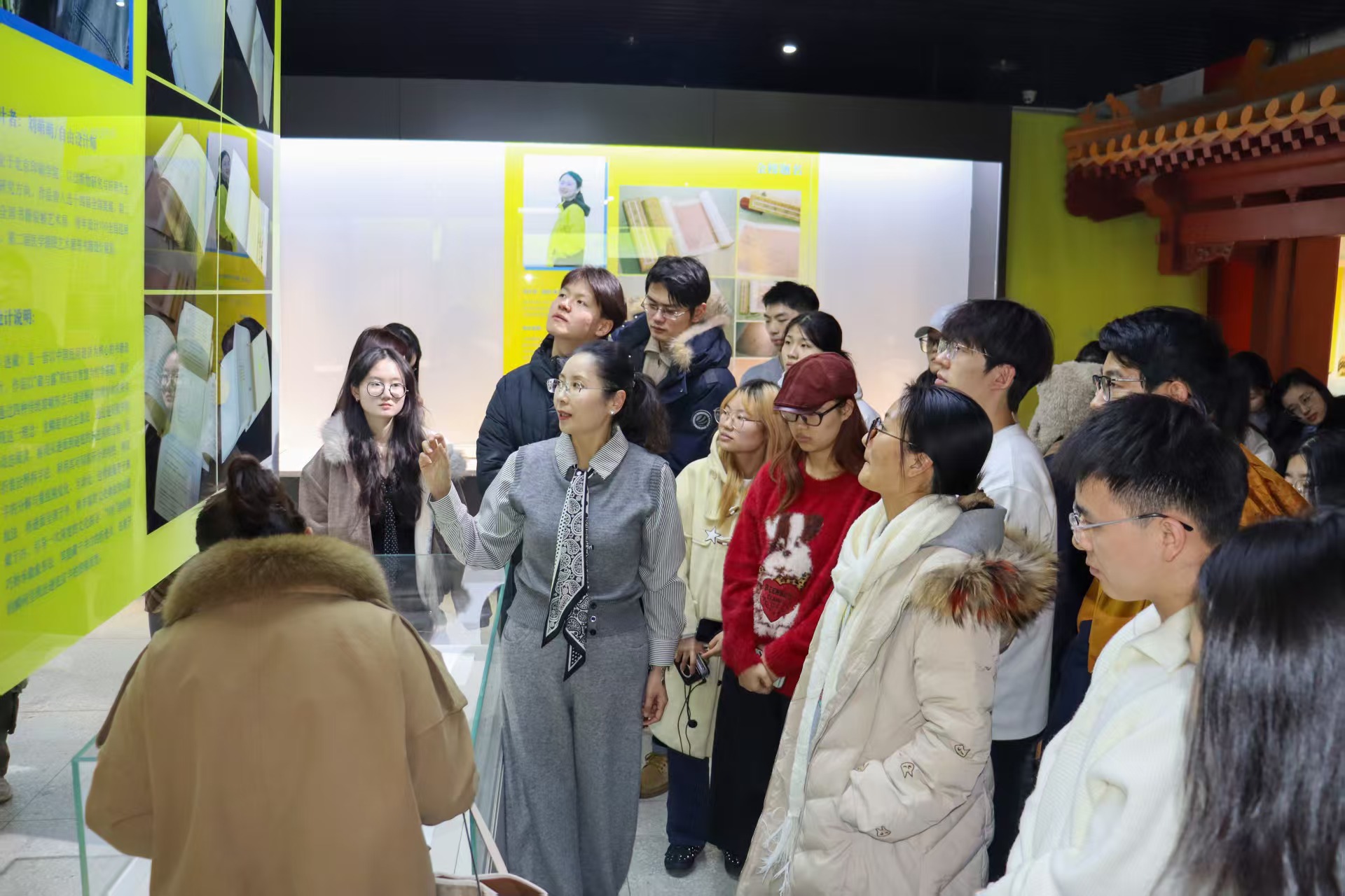 12月11日下午,校团委组织青马班学员和校级学生组织骨干前往中国印刷博物馆参观国家艺术基金2025年度资助项目《图书装帧设计人才培训》成果展。活动特别邀请设计艺术学院教授、出版物设计艺术研究中心主任、中国出版协会书籍设计艺委会副秘书长夏小奇老师为同学们进行现场讲解授课,以艺术成果为媒、以文化传承为魂,推动专业特色与理想信念教育深度融合。