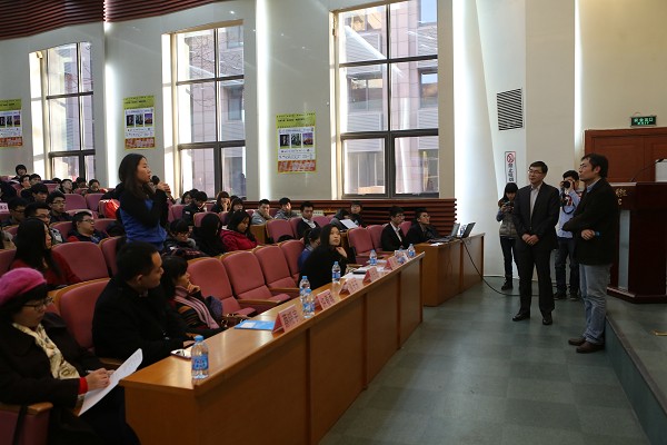 在每位老师演讲结束后的提问环节中,在场同学根据对嘉宾的讲座内容提出了一些问题。嘉宾们认真地回答同学们的提问,并就一些热点问题与同学们进行观点探讨和交锋。
