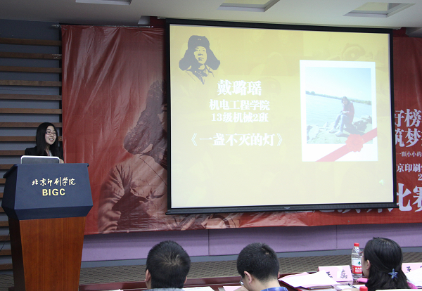 经过激励的角逐,机电工程学院的戴璐瑶同学荣获一等奖,机电工程学院的石玉同学、新闻出版学院的刘梦迪同学荣获二等奖,印刷与包装工程学院岳亚文同学、新闻出版学院李云婷同学、张远溪同学荣获三等奖。