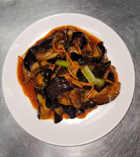 茄子切条,酸甜口味中带有一丝微辣,软嫩多汁。搭配青椒、红椒等蔬菜,色彩丰富,口感层次分明。这道菜酸甜适中,鲜香浓郁,是一道让人食欲大开的下饭菜,也是川菜中的经典之作。