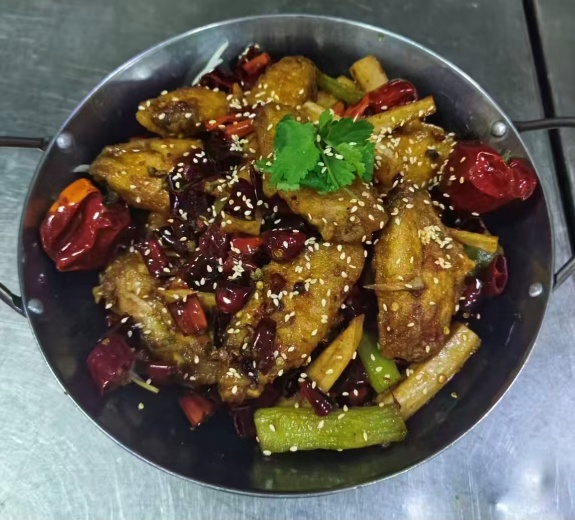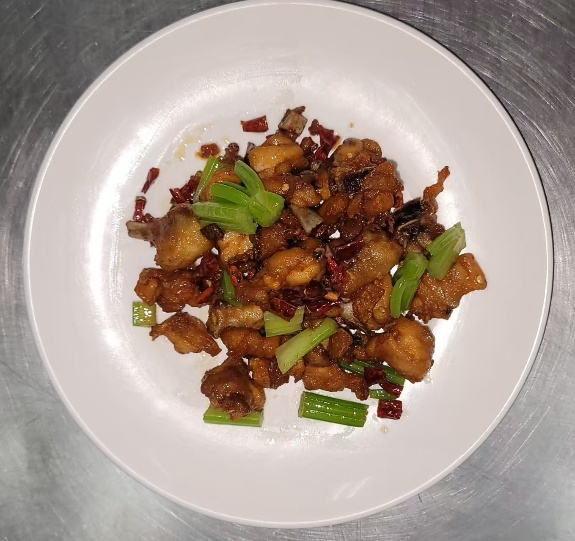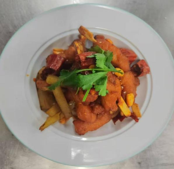 精选鸡肉切丁,经过油炸至外皮酥脆,内里鲜嫩,搭配干辣椒和花椒的热烈拥抱,每一口都是麻辣与鲜香的激情碰撞。葱香点缀其间,为这道川味经典增添了一抹清新,让人一吃就停不下来。