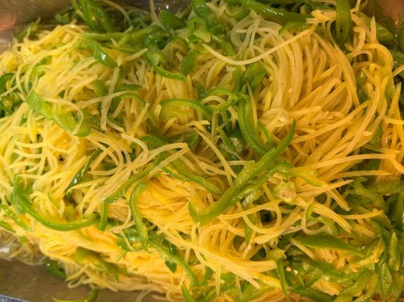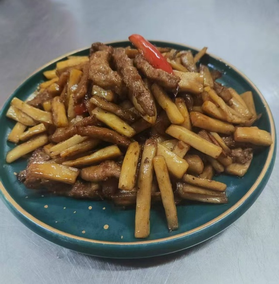 土豆与青椒皆化作均匀细丝,猛火快炒锁住水灵。入口是土豆的脆爽与尖椒的鲜辣交织,是盘中最利落的家常风景。