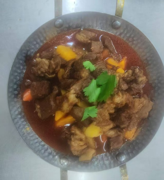 精选牛肉与红薯,搭配胡萝卜等蔬菜,在锅中慢炖,红薯的甜香与牛肉的鲜美完美融合,汤汁浓郁,营养丰富。牛肉嫩滑,红薯软糯,是一道温暖人心的炖菜,适合在寒冷的季节里享用,让人倍感温馨。