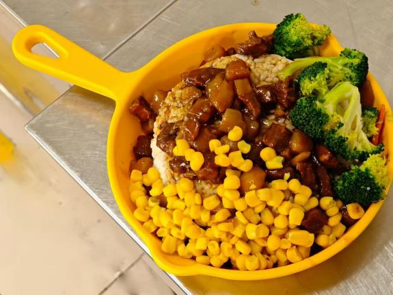 精选五花肉与香菇的绝妙搭配,经过长时间炖煮,肉质酥烂,酱汁浓郁,每一口都是满满的肉香和菇香。全熟蛋的加入,不仅增添了营养,更让这份饭多了一份家的味道。蛋香与饭香交织,是满足感爆棚的家常美味。
