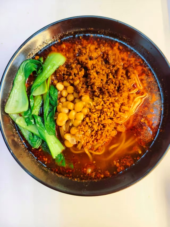 精选豌豆与肉末的完美结合,豆子软糯,肉末香浓,搭配麻辣鲜香的红油汤底,面条细滑劲道,每一口都是对味蕾的极致诱惑,是重庆小面中的翘楚,让人回味无穷。