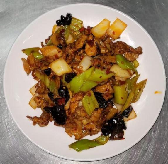 精选五花肉,经过煮、切、炒三步工艺,肉片边缘微卷,呈现出诱人的“灯盏窝”。搭配青椒、洋葱和木耳,色彩丰富,口感层次分明。豆瓣酱的加入,让整道菜酱香浓郁,回味无穷,是下饭的绝佳伴侣。