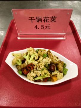 花菜在干锅里炼出微焦的斑驳,吸收酱汁与肉香。入口爽脆有声,是素菜也能吃出荤香的典范。