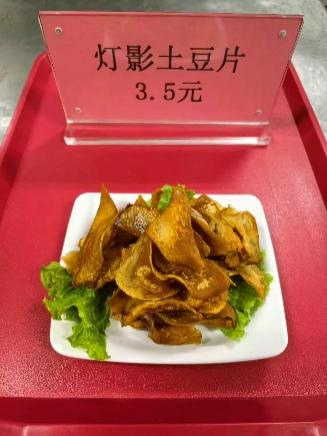 土豆被切成蝉翼,在热油中蜷缩成琥珀色涟漪,入口是轻盈的焦脆,细品是薯香和调料的双重奏。