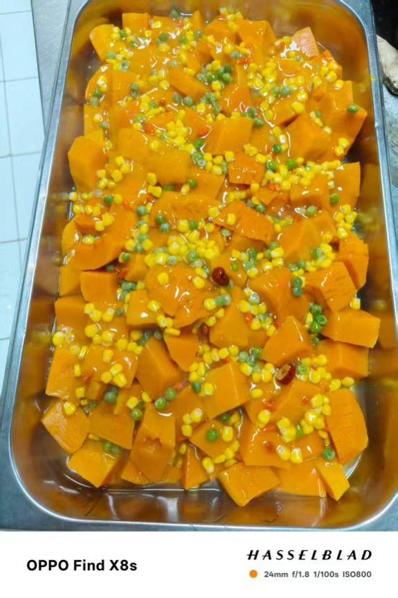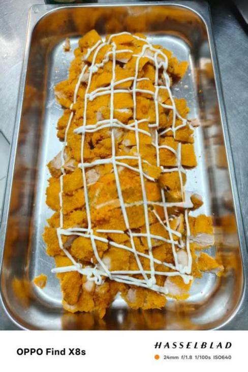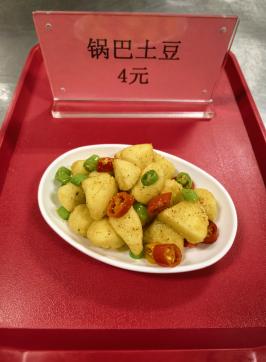 高温炙烤出焦糖色的坚硬外壳,内里却依旧粉糯。一口一个的小确幸,是街头小食在食堂的完美复刻。