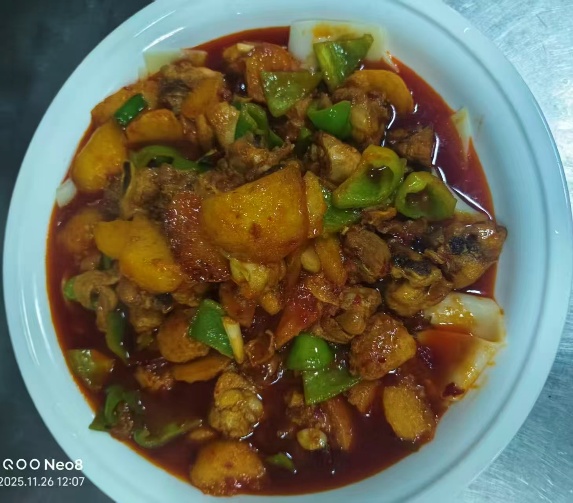 精选鸡肉与土豆块,搭配青椒、红椒等蔬菜,经过秘制香料的精心炖煮,鸡肉鲜嫩多汁,土豆软糯入味。香辣的汤汁渗透每一块食材,带来层次丰富的口感体验,是让人垂涎欲滴的新疆风味美食。