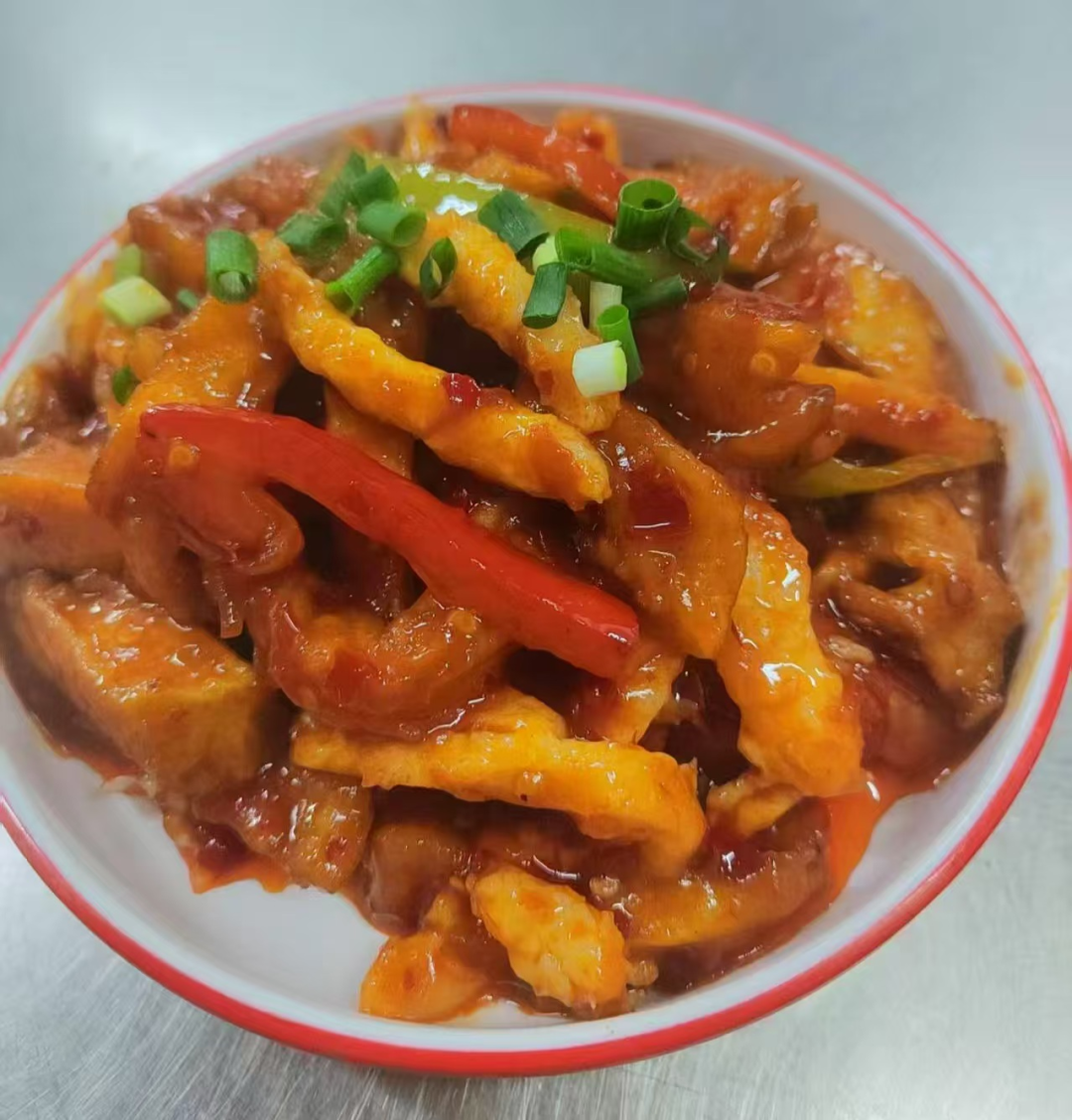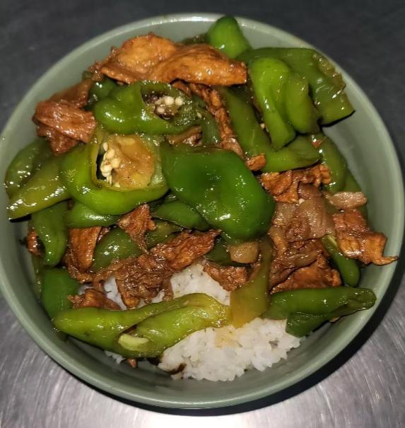 精选嫩滑猪肉与鲜脆青椒的激情碰撞,快火翻炒,锁住肉质的鲜美与青椒的清新,每一口都是鲜辣与肉香的完美融合。盖在热腾腾的白饭上,让每一粒米都沾染上浓郁的香气,是简餐中的美味享受。