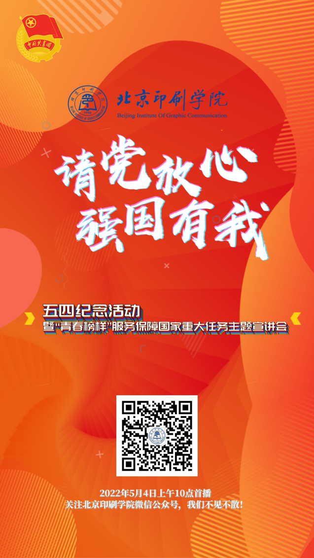 为深入学习习近平总书记在中国人民大学考察时的重要讲话精神,贯彻落实团中央关于开展“喜迎二十大、永远跟党走、奋进新征程”主题教育实践活动要求,学习宣传伟大建党精神、北京冬奥精神,努力营造昂扬向上、团结奋进的爱国主义氛围,学校决定于2022年5月4日举办“请党放心 强国有我”五四纪念活动暨“青春榜样”服务保障国家重大任务主题宣讲会。