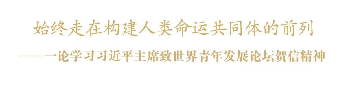 青年朝气蓬勃、孕育希望,人类的明天靠青年创造,世界的未来由青年书写。习近平主席在致世界青年发展论坛的贺信中指出,“中国始终把青年看作推动社会发展的有生力量,鼓励青年在参与推动构建人类命运共同体的实践中展现青春活力。”这不仅宣示了中国党和政府支持青年将个人发展的“小目标”融入国家发展的“大蓝图”、汇入世界发展的“大潮流”的政策导向,更彰显了新时代中国青年在构建人类命运共同体、弘扬全人类共同价值这一伟大实践中的使命担当。